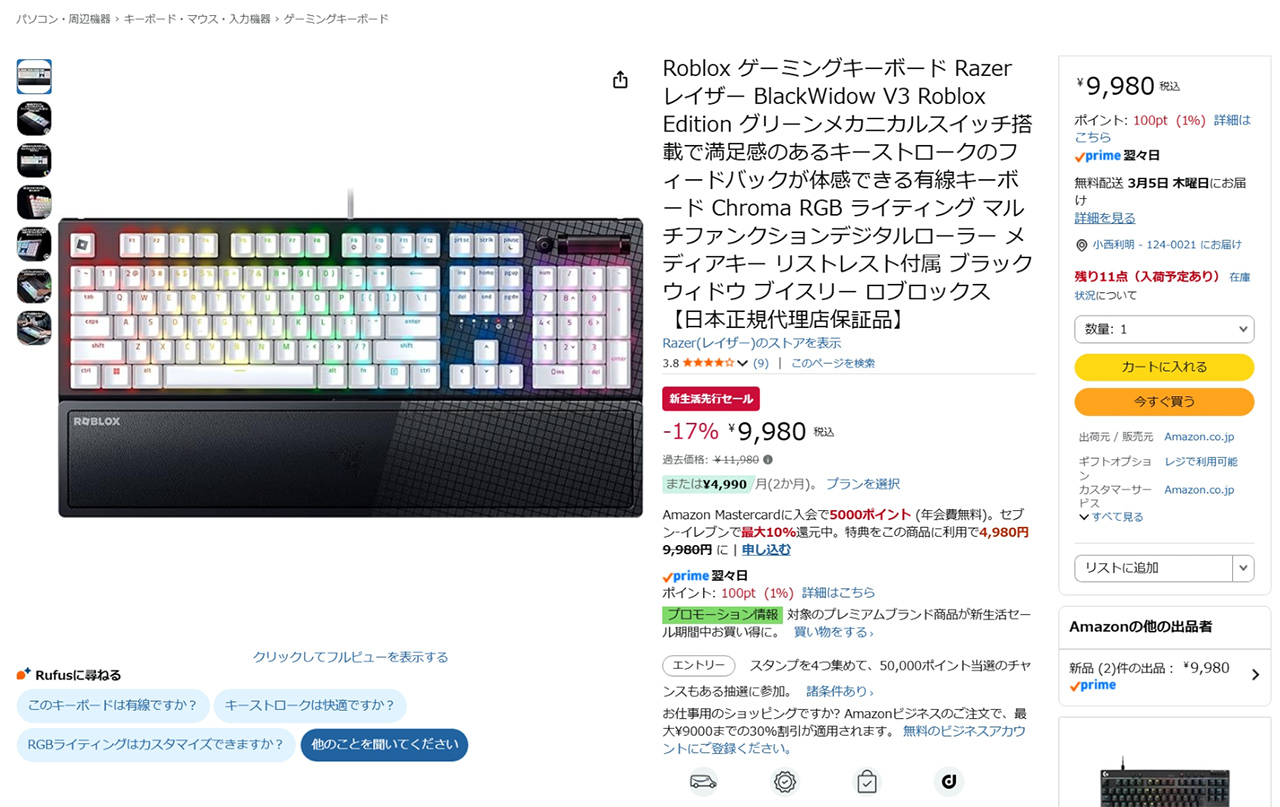 Razer製品が安い! 春のセールがAmazonやRazer製品取り扱い店で開催中