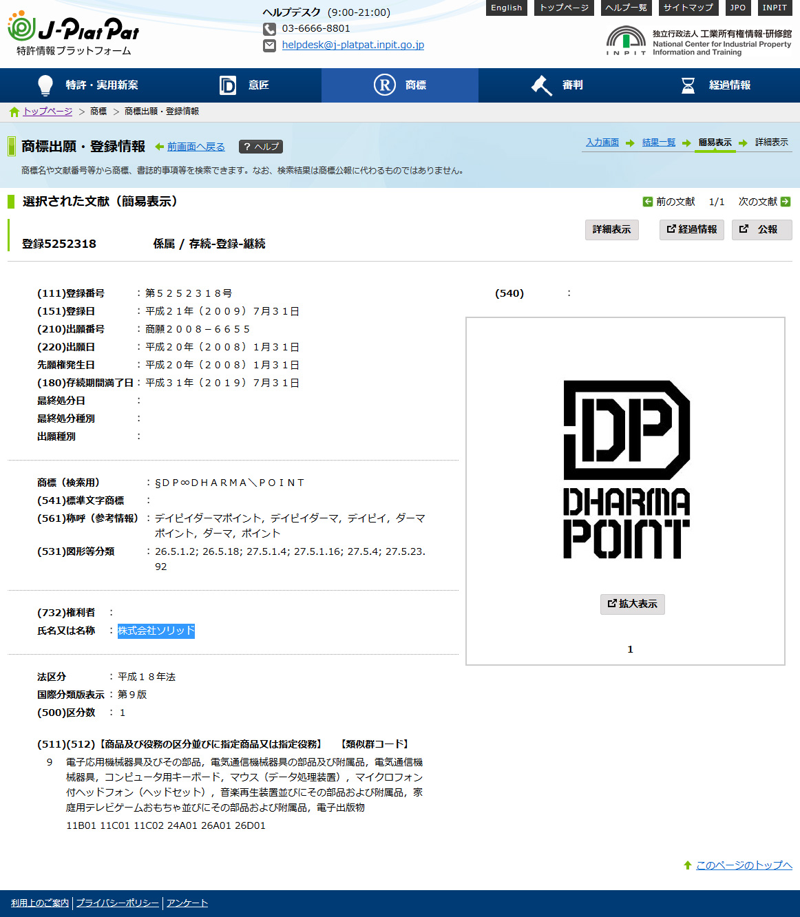 「DHARMAPOINT」復活か? 「ソリッド」という会社による商標登録を確認