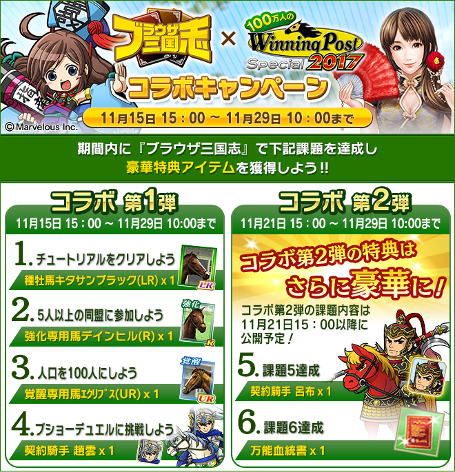 「ブラウザ三国志」が「100万人のWinning Post Special」とのコラボを実施