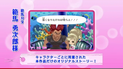 本作では有名マンガ/アニメとのコラボを実現していて,「ルパン三世」のルパン三世と峰不二子,「範馬刃牙」の範馬勇次郎,「カイジ」シリーズの伊藤開司,「のだめカンタービレ」の千秋真一,「ガラスの仮面」の速水真澄,「美少女戦士セーラームーン」のタキシード仮面ら12人のキャラクターが,主人公の働くお店に“来店”する。コラボキャラのセリフはボイス付きで,各作品で同キャラクターを演じた声優を起用している。詳細は,
