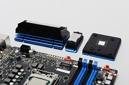 電源フェーズ数は見る限り6+2の構成で,Intel製マザーボードでおなじみのドクロがあしらわれた大型のヒートシンクを搭載するのが特徴的。メモリスロットは4本で,デュアルチャネルのDDR3 SDRAMおよびDDR3L SDRAMがサポートされる。メモリコントローラを持つCPUがDDR3-1600までしか対応していないものの,マザーボード自体はデュアルチャネルならPC3-19200(DDR3-2400),シングルチャネルならPC3-21300(DDR3-2660)を動作させられる設計になっている。