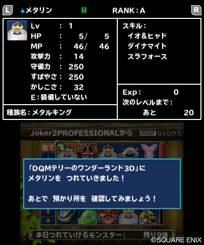 • 画像ギャラリー No.010 | 「ドラゴンクエストモンスターズ テリーのワンダーランド3D」エンディング後に可能となる「究極配合」などの新要素が判明