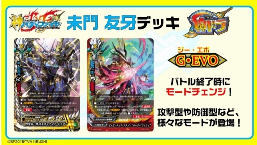 「神ドラ」は,友牙が使用する「ドラゴンワールド」のデッキだ。このデッキの特徴は,バディであるガルガンチュア・ドラゴンの持つ能力「G・EVO」。バトルフェイズ終了時に,攻撃型や守備型といったモードチェンジができるというもので,男のロマンである変身を楽しみながら白熱のバトルが楽しめるという。