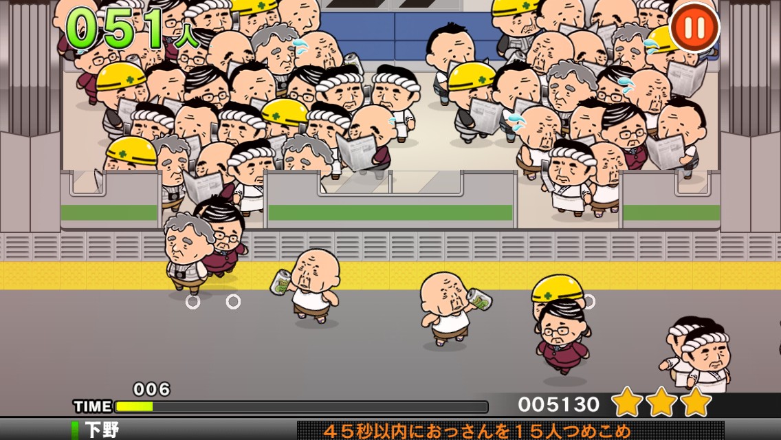 • 画像ギャラリー No.005 | 日本の日常風景!? おっさんたちを電車に詰め込むスマホ向けカジュアルゲーム「つめこめおっさん」を紹介する「(ほぼ)日刊スマホゲーム通信」第399回