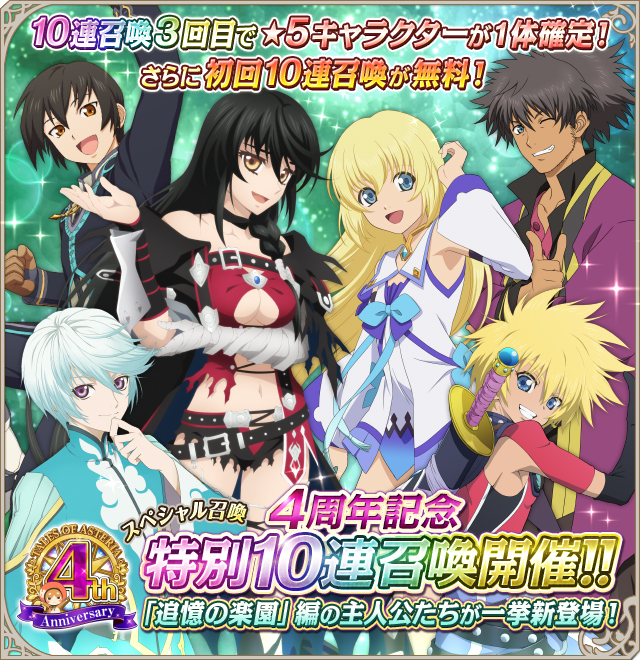 「テイルズ オブ アスタリア」,初回の10連召喚が無料で引ける4周年記念キャンペーン第1弾を開催
