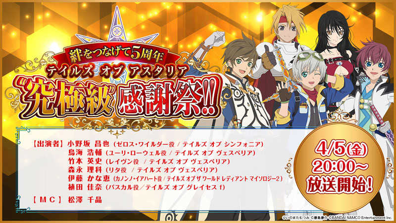 「テイルズ オブ アスタリア」,5周年を記念した生放送が4月5日に配信