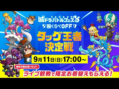 9月11日(日)17時より、「城ドラバトルフェス 2022」のタッグ王者決定戦が開催!決定戦の様子は城とドラゴンYouTube公式チャンネルでライブ配信され、観覧特典としてゲーム内の魔法使い限定お着替え「毒蛇の魔法使いセット」の配布もあるので、ぜひ生放送を視聴して手に入れましょう!