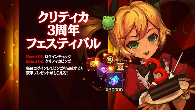 「クリティカ 〜天上の騎士団〜」は7月17日で3周年。本日から記念キャンペーン開催