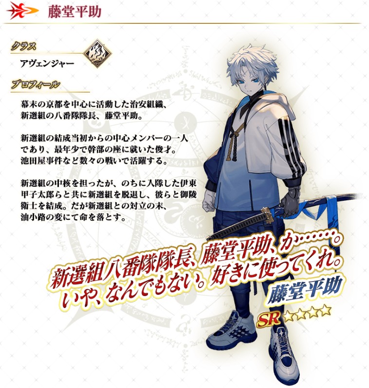 「FGO」待望の新セイバー「★5(SSR)近藤 勇」のピックアップ召喚を開催。新選組のメンバーが総登場する全体宝具「誠の旗」が話題に