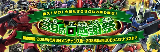 3月8日(火)メンテナンス終了後より、ザク(ザック)をテーマとするイベント「ザクの日感謝祭」を開始いたしました。