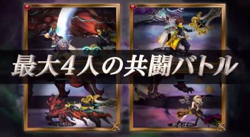 また、本作の最大の魅力である”共闘”は、今までのゲームとは一線を画す内容となっています。最大4人のリアルタイムでの共闘戦に対応。さらに、他のプレイヤーのバトル中にいつでも乱入、参戦できるので、事前に特定の人とパーティーを組むことなく、手軽に協力プレイをお楽しみいただけます。本格ベルトスクロールで迫力あるアクションを体感でき、次々と現れる敵を仲間と共に倒す爽快感は圧巻!