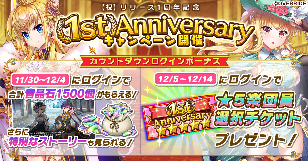 「ガールズシンフォニー」,リリース1周年記念キャンペーンを開催,★5楽団員と交換できるチケットがもらえる