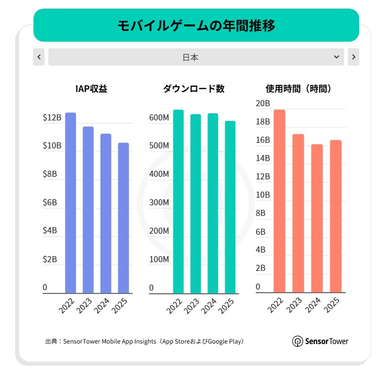 スマホゲームのDL数は減少傾向だが,プレイ時間は増加傾向。2025年のモバイル/PC/コンソール市場を振り返るSensor Towerのレポート2本を紹介