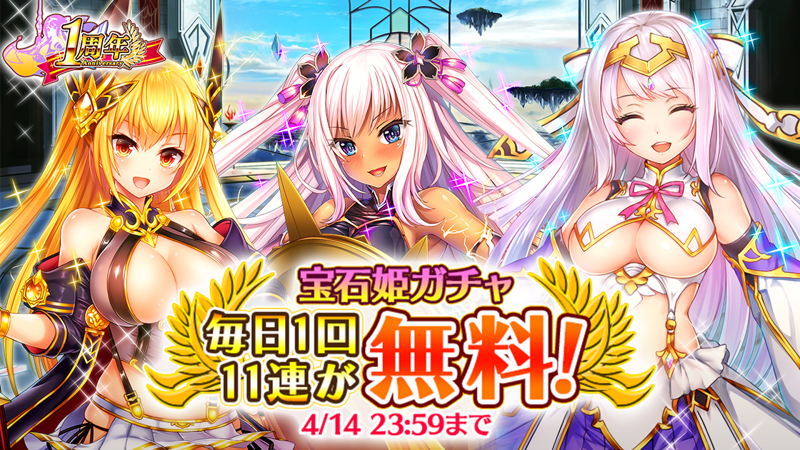 「宝石姫」,1日1回11連無料などβリリース1周年を記念したキャンペーンを開催