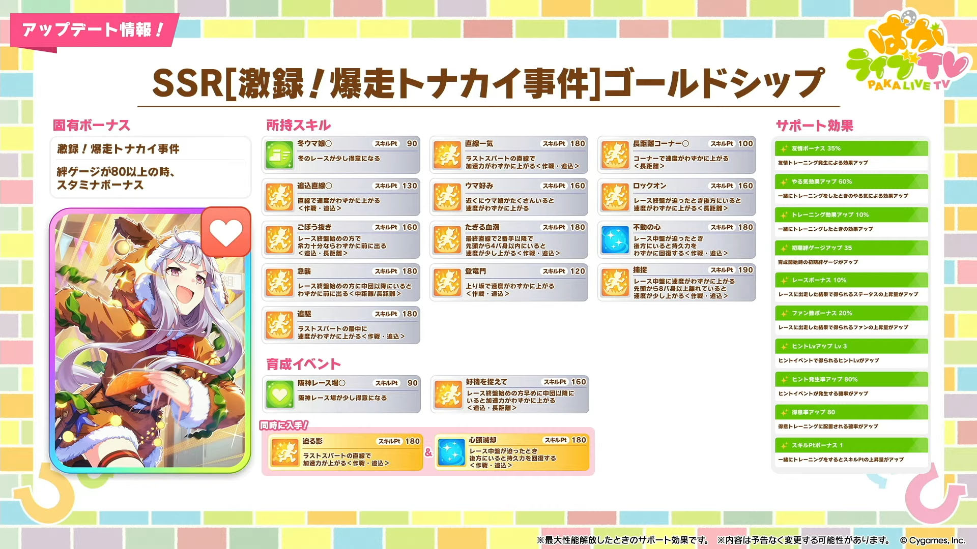 「ウマ娘」,クリスマス衣装のナカヤマフェスタとドリームジャーニーを実装。新サポートではSSRゴールドシップ,SSRフェノーメノが登場
