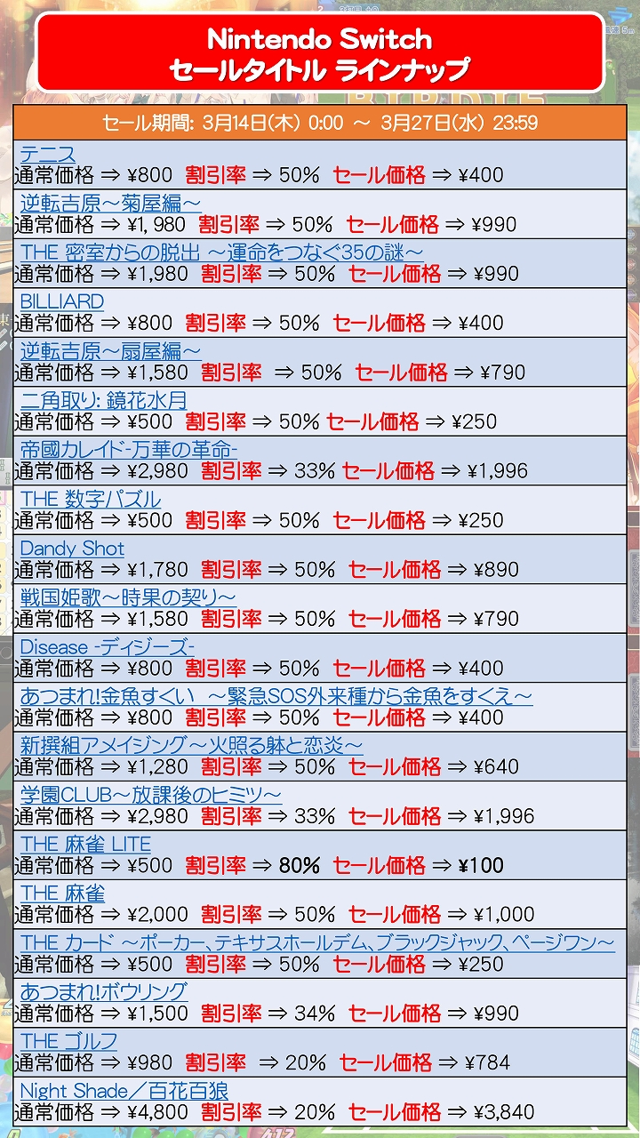 Switch&3DSのダウンロードソフトを対象に「D3パブリッシャー 大決算セール」第2弾を開催。最大で80%オフの商品も