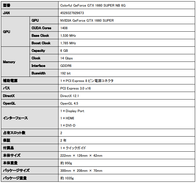Colorful製GTX 1660 SUPERカードが国内発売。税込約3万1000円