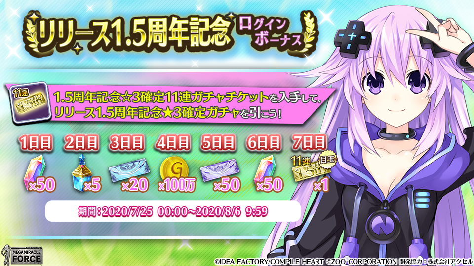 「メガミラクルフォース」が間もなく配信1.5周年。記念キャンペーンが本日スタート