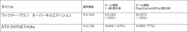 「ヴィクター・ヴラン オーバーキルエディション」「ATV ドリフト&トリックス」がセール価格で登場