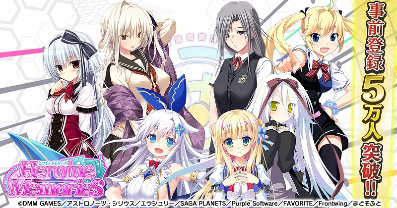 「ヒロインメモリーズ」,事前登録者数が5万人を突破。さらなる報酬が得られる追加キャンペーンを実施