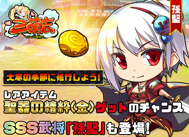 「三萌志」,レアアイテム「聖器の精粋(金)」とSSS武将「孫堅」が登場するイベントが開催