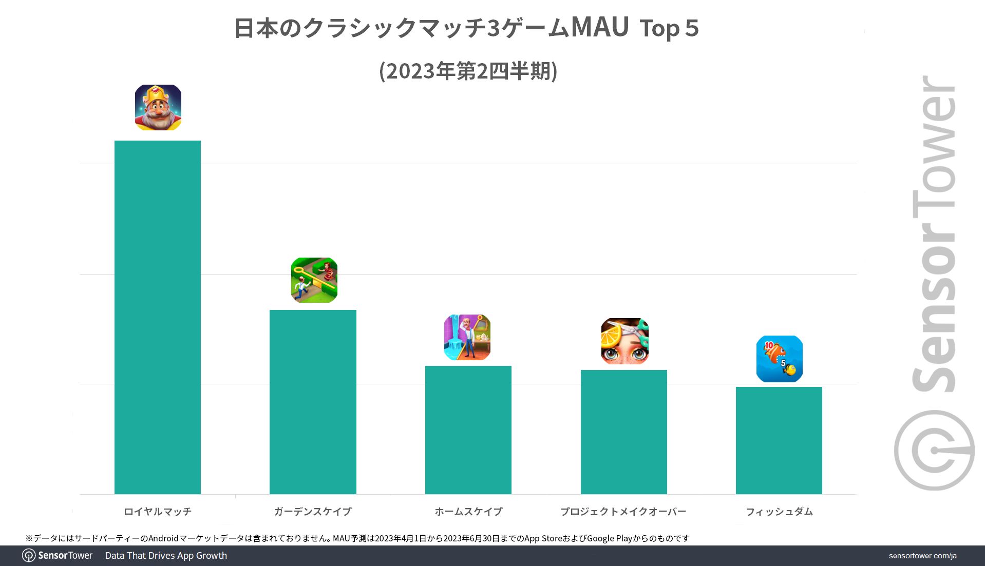 マッチ3パズル「ロイヤルマッチ」の国内収益が2023年4月〜6月に約29億円を達成。アクティブユーザー数も同ジャンルでトップ