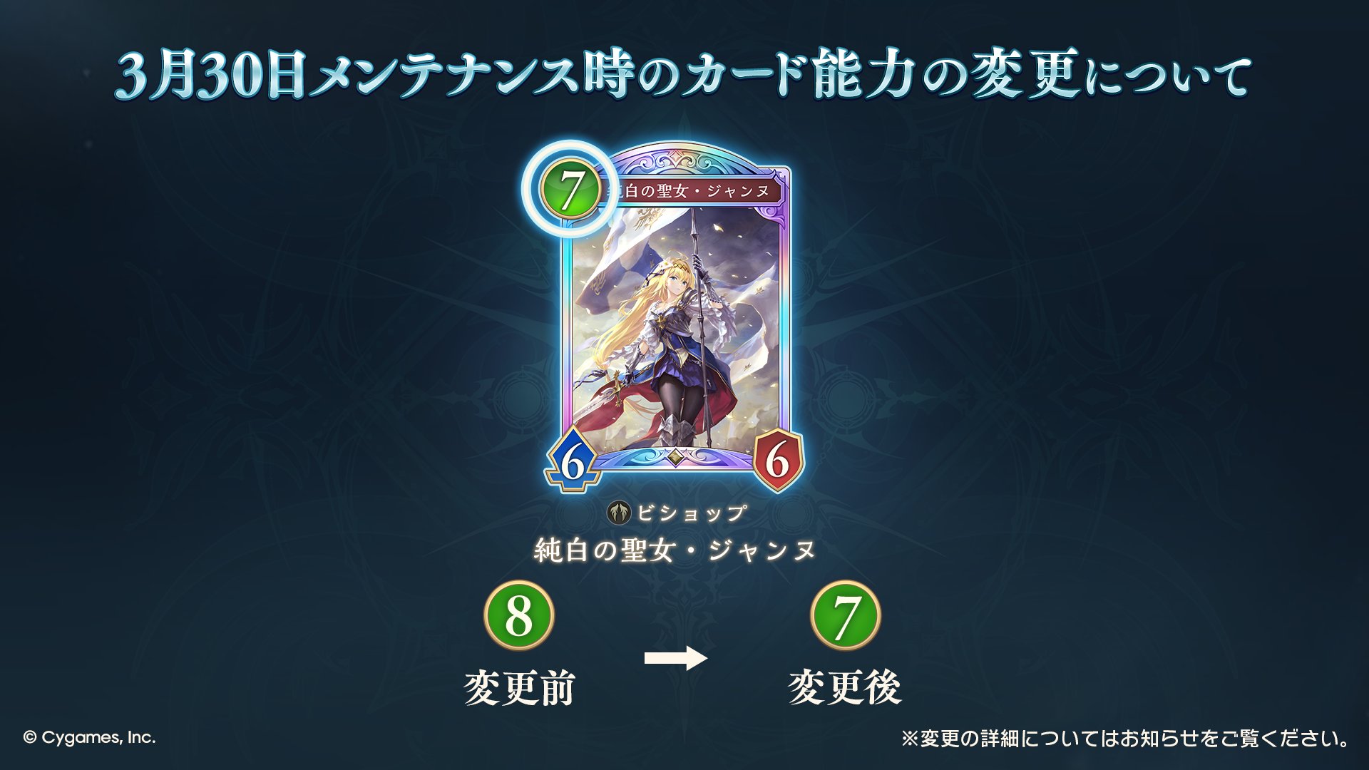 • 画像ギャラリー No.001 | 「Shadowverse: Worlds Beyond」,本日のアプデにて“ササニド”と“返還の剣閃”が弱体化。“ジャンヌ”と“リアントース”は強化に