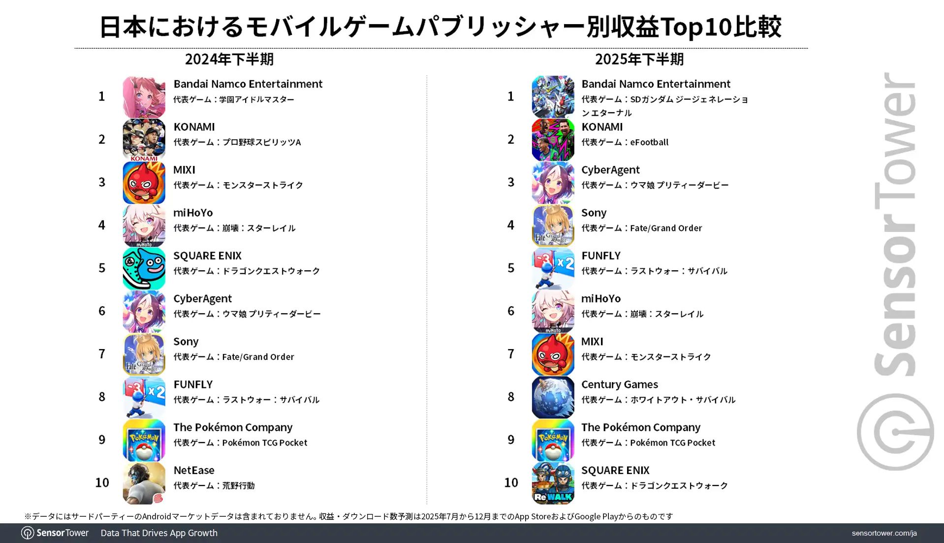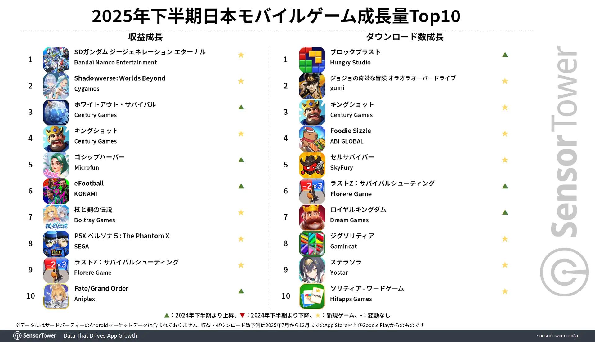 Sensor Tower,2025年下半期の国内モバイルゲーム市場の分析レポートを公開。収益は「ラストウォー」,DL数は「ブロックブラスト」がトップ