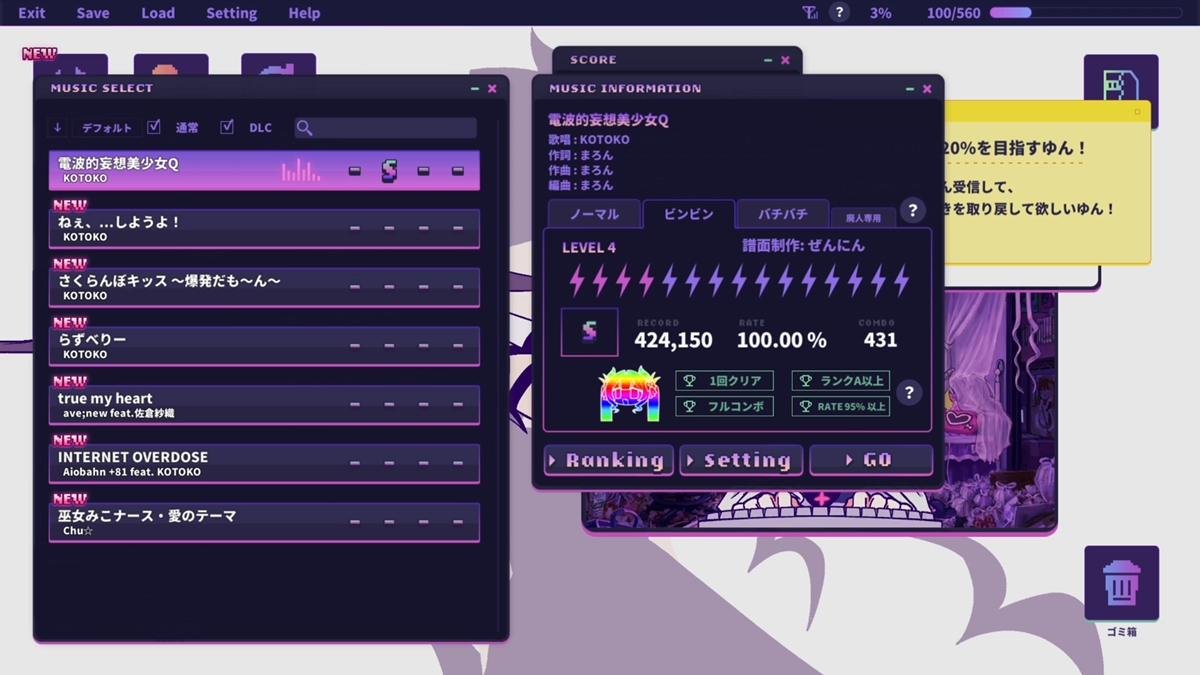 • 画像ギャラリー No.004 | ヒキコモリの少女が電波ソングでハイになるリズムADV「ゆんゆん電波シンドローム」,Steamで本日発売。ラブリーな怪文書で世界を狂わせよう