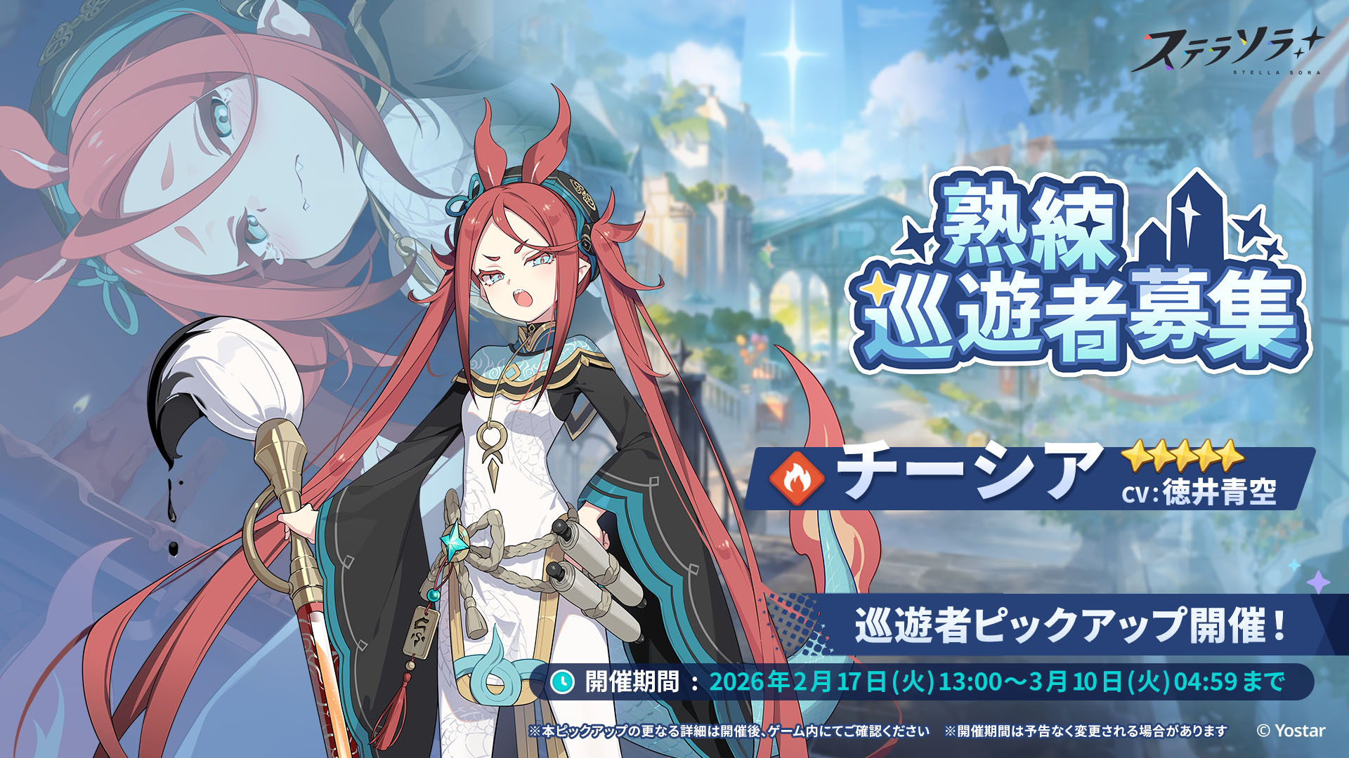 「ステラソラ」,★5巡遊者「チーシア」(CV:徳井青空)のピックアップガチャを開始。新ミニゲームイベント「ブロックくずし」もスタート