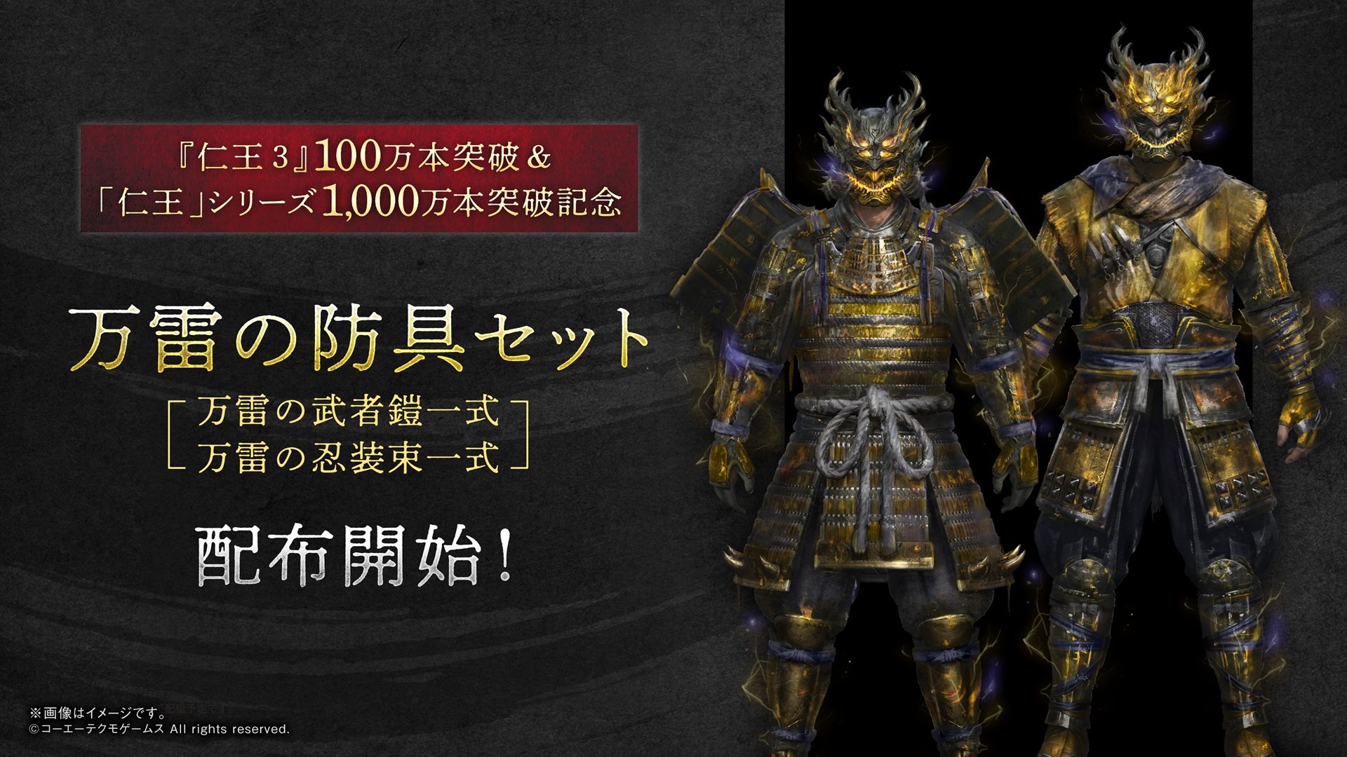 「仁王3」,PS5版が10%オフで初セール。アップデートで無償配布装備「万雷の武者鎧(サムライ)」「万雷の忍装束(ニンジャ)」を追加
