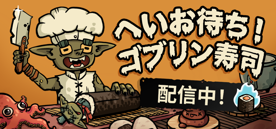 「へいお待ち!ゴブリン寿司」,早期アクセス版を配信開始。究極のゴブリン寿司職人を目指す,ローグライクな寿司レストラン経営ゲーム