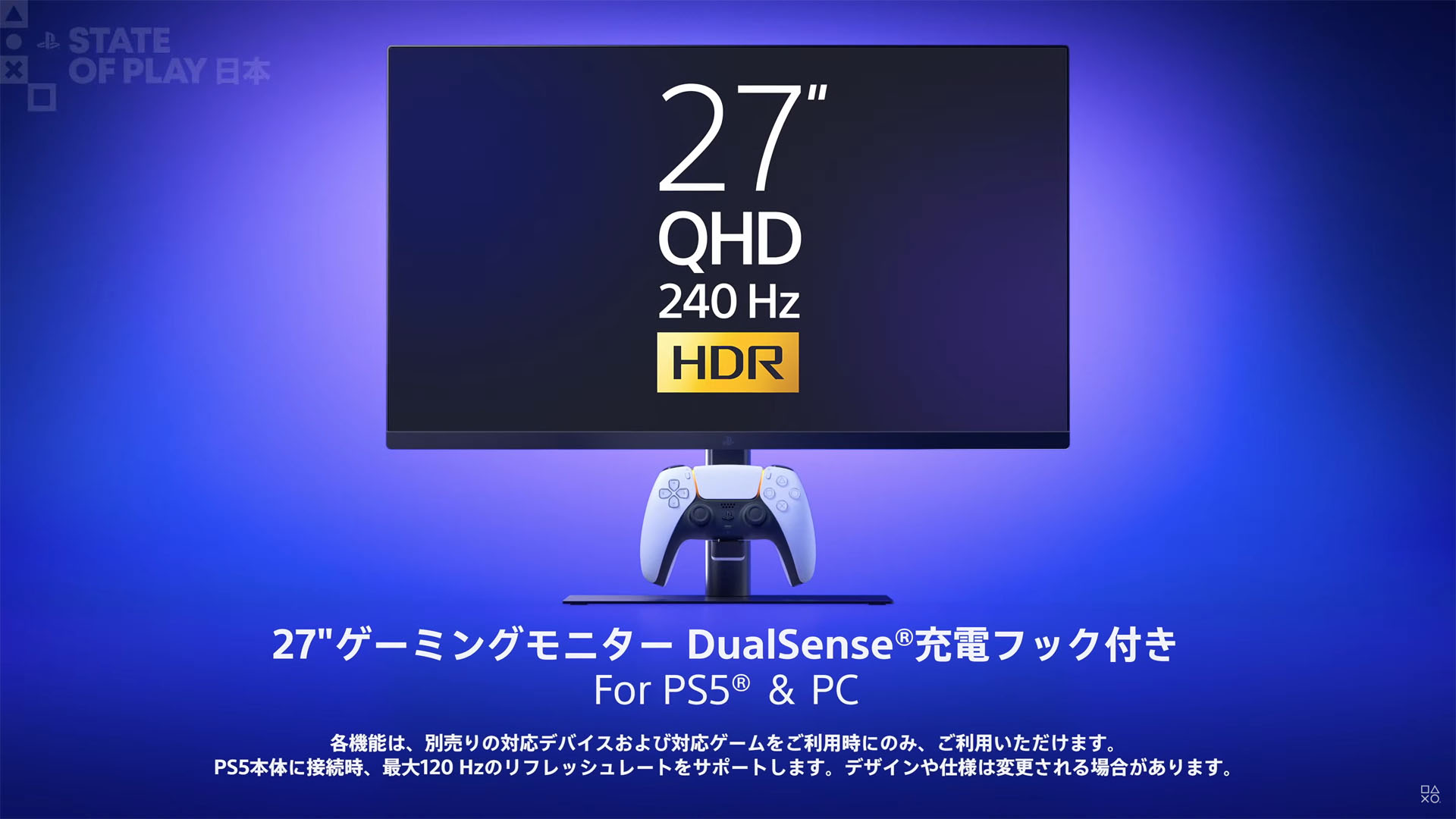 SIE,ゲーマー向け27インチディスプレイを2026年に発売。QHD解像度,240Hz表示,VRRに対応。DualSenseを充電できるフックも搭載